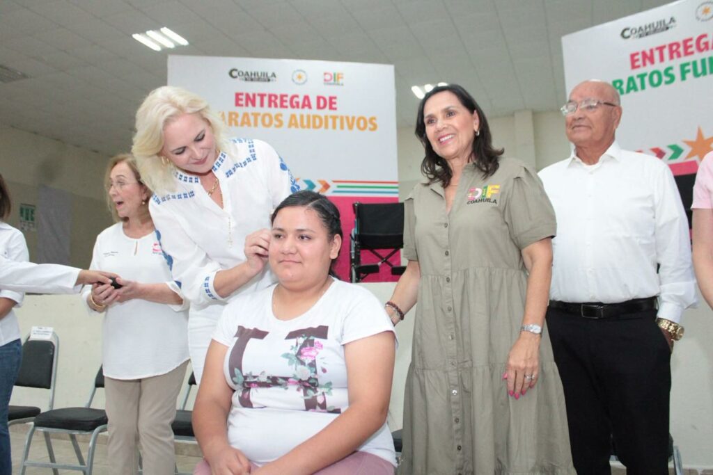 Múzquiz, Coahuila; 18 de septiembre.– Con el firme compromiso de mejorar la calidad de vida de las familias muzquenses, el Gobierno del Estado de Coahuila, a través del DIF Coahuila en coordinación con el DIF Múzquiz y con el apoyo de la Tribu Kikapoo, realizó la entrega de más de 80 aparatos auditivos y 20 apoyos funcionales, entre los que destacan sillas de ruedas.