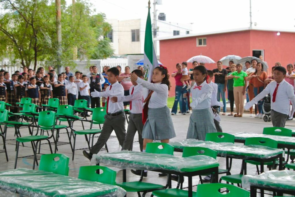 MÚZQUIZ, COAH.— La alcaldesa Laura Patricia Jiménez encabezó la entrega de nuevo mobiliario a la escuela primaria Manuel Acuña, como parte del programa estatal “Mejora Coahuila”, con el objetivo de fortalecer las condiciones de enseñanza y aprendizaje en el municipio.