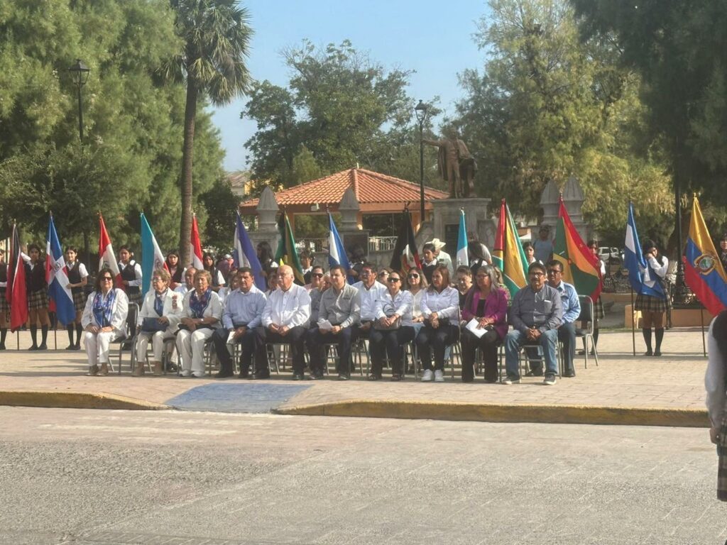 En representación de la alcaldesa, asistió el secretario del Ayuntamiento, José Manuel Flores Múzquiz, quien encabezó la ceremonia acompañado de la profesora Alejandra Rosales, presidenta de la Mesa Redonda Panamericana, además de regidores, directivos escolares, docentes, estudiantes y ciudadanía en general.