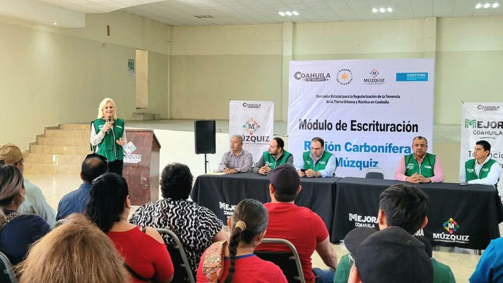Múzquiz, Coahuila.– Con el objetivo de seguir apoyando a las familias en el proceso de regularización de su patrimonio, el Gobierno Municipal realizó este 18 de noviembre el sexto módulo de escrituración, en coordinación con CERTTURC, dentro del Auditorio Municipal, ubicado en la Zona Centro.