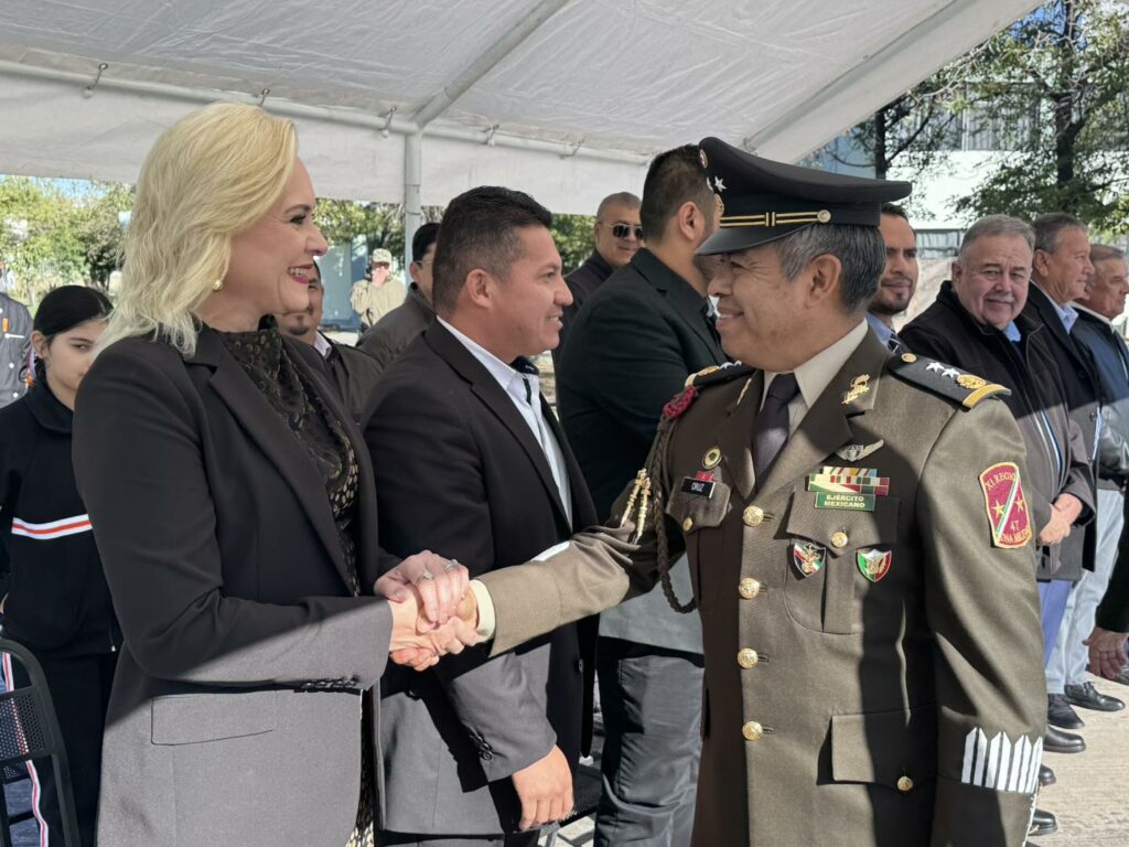 La alcaldesa Laura Jiménez Gutiérrez destacó la importancia del trabajo coordinado entre la Secretaría de la Defensa Nacional y el Gobierno Municipal de Múzquiz, reiterando que esta colaboración fortalece de manera significativa las acciones de seguridad en beneficio de las familias muzquences.