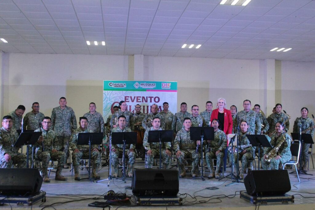 Múzquiz, Coahuila.– El Gobierno Municipal de Múzquiz, en coordinación con la Secretaría de la Defensa Nacional (SEDENA), llevó a cabo con gran éxito el concierto de la Banda de Música de la XI Región Militar en el Auditorio Municipal Urbano Santos.