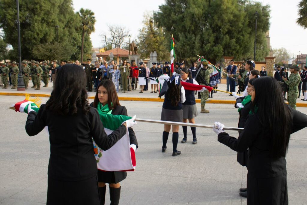 En representación de la presidenta municipal Laura Patricia Jiménez Gutiérrez, acudió el secretario del Ayuntamiento, José Manuel Flores Múzquiz, quien acompañó a autoridades militares, educativas y civiles en este acto conmemorativo.