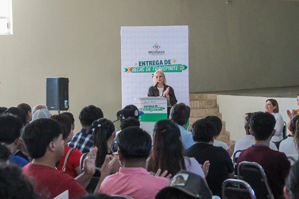 Múzquiz, Coahuila.– Con el firme compromiso de fortalecer la permanencia escolar y apoyar la economía de las familias, la presidenta municipal Laura Jiménez Gutiérrez encabezó la entrega de 252 Becas de Transporte a estudiantes del municipio que cursan sus estudios en instituciones de nivel medio superior y superior en la Región Carbonífera.