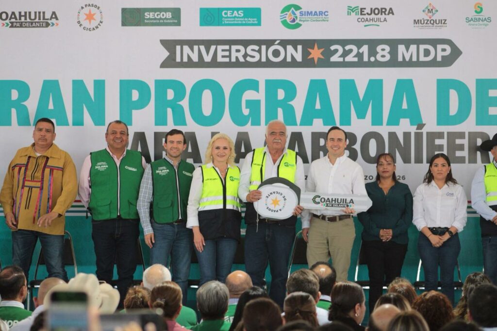 La inversión que se aplicará durante 2026 es considerada histórica y responde a proyectos previamente consensados con las autoridades municipales. Entre las obras que ya se encuentran en marcha destacan, en Múzquiz, la perforación del pozo Aparicio 3 y la construcción de la línea de agua del Colegio Militar hacia el barrio El Alto.