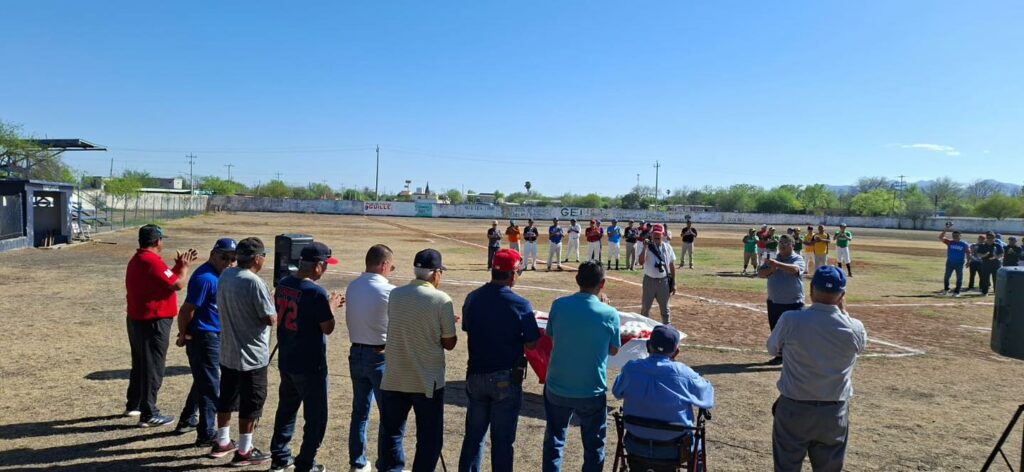 Villa de Palaú, Coah.- Con la participación de destacados equipos y peloteros de gran trayectoria, se llevó a cabo la inauguración de la Liga de Béisbol Veteranos “Enrique Zamarrón” edición #15 temporada 2026, dedicada en esta ocasión a Sebastiano Villanueva Jiménez y Sergio Ocura Moreno, reconociendo su aportación al béisbol local.